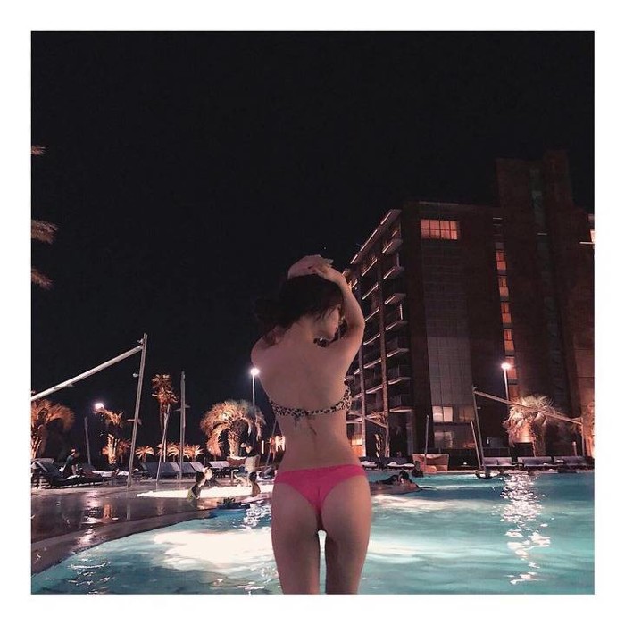 공개된 사진 속 한서희는 수영장서 핫핑크색 비키니 수영복을 입고 아찔한 뒤태를 뽐내고 있는 모습으로 감탄을 자아냈다.