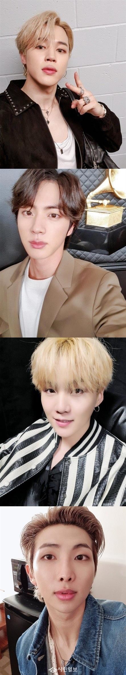 이어 진은 "그래미석지니", 슈가는 "예압", RM은 "Purple you #GRAMMYs"라는 글과 함께 셀카 사진을 공개하며 팬심을 사로잡았다.