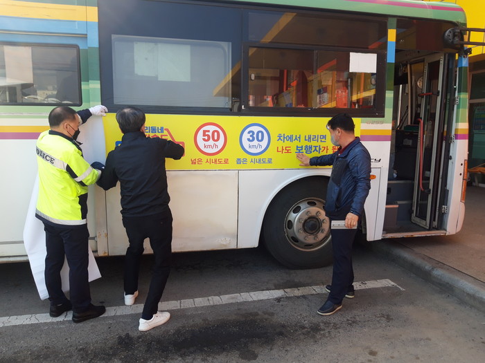 함평경찰서는 오는4월17일(토)부터 전국적으로 시행되는 안전한 ‘교통문화 정착 안전속도 5030’ 대비, 함평 군민교통(10대) 및 택시(30대) 등 대중교통에 홍보스티커를 부착, 보행자 보호활동에 적극 나서 지역민들의 호응을 얻고 있다.