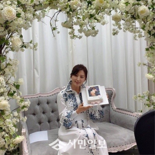 공개된 사진 속 김희애는 물오른 미모를 뽐내며 자신의 모습이 새겨진 케이크를 들고 여신 아우라를 드러내 감탄을 자아냈다.