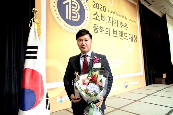 | ▲ 16일 밀레니엄 힐튼서울에서 열린 2020 소비자가 뽑은 올해의 브랜드대상 시상식에서 보람그룹 이창우 대표이사가 상조서비스 부문 대상을 받았다.(사진제공=보람상조) |