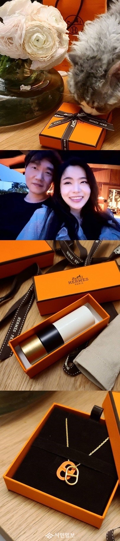 공개된 사진 속에는 서유리 남편 최병길 PD가 선물로 준 명품 목걸이와 립스틱이 담겨 달달함을 자아냈다.