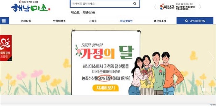 [해남=정찬남 기자] 전남 해남군 쇼핑몰 해남미소는 5월 가정의 달을 맞아 오는 21일까지 농수축산물 할인 행사를 진행한다.