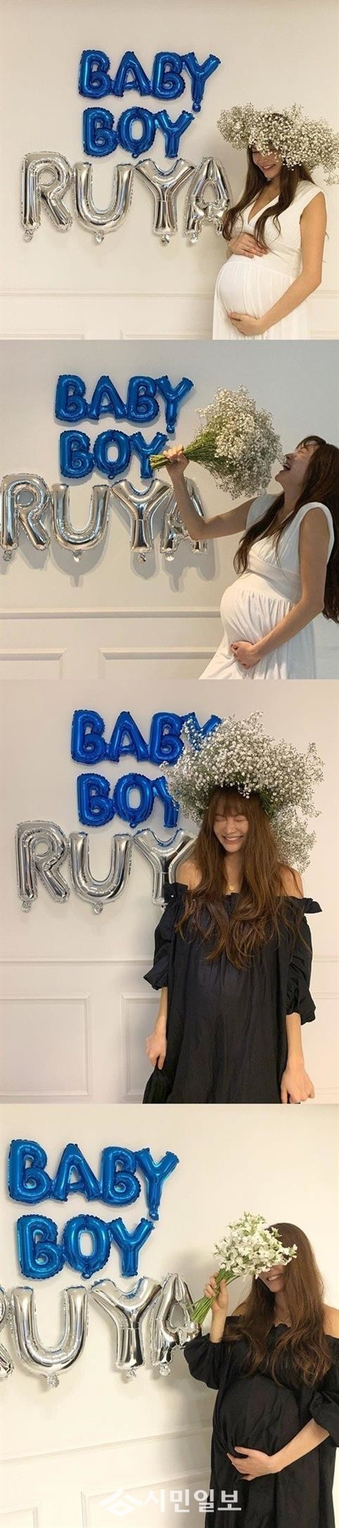 배우 양미라는 자신의 인스타그램에 "루야 D-50 #셀프만삭 미미 덕분에 집에서 만삭사진"이라는 글과 함께 사진 여러 장을 게재했다.