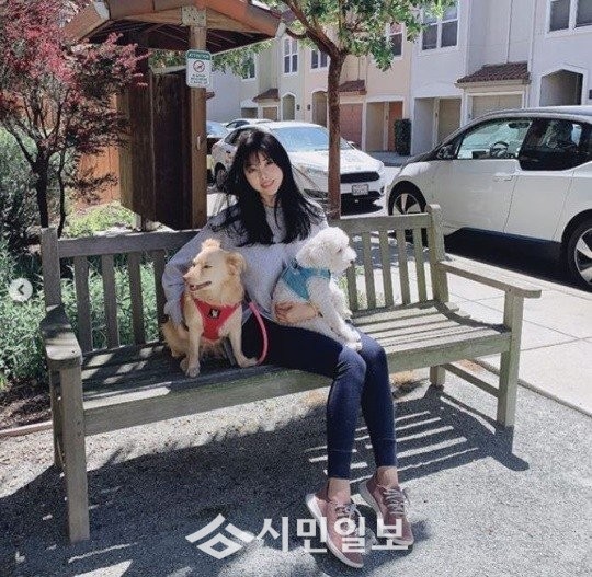 서동주는 자신의 인스타그램을 통해 "집 앞 벤치 #sunnyday #peepeetimeforpups"라는 글과 함께 사진을 게재했다.