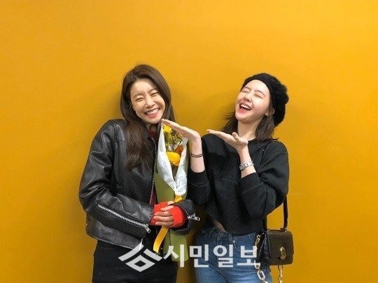 공개된 사진 속 소진은 꽃다발을 안고 민아와 함께 웃음꽃을 활짝 피우고 있는 모습으로 훈훈함을 자아냈다.