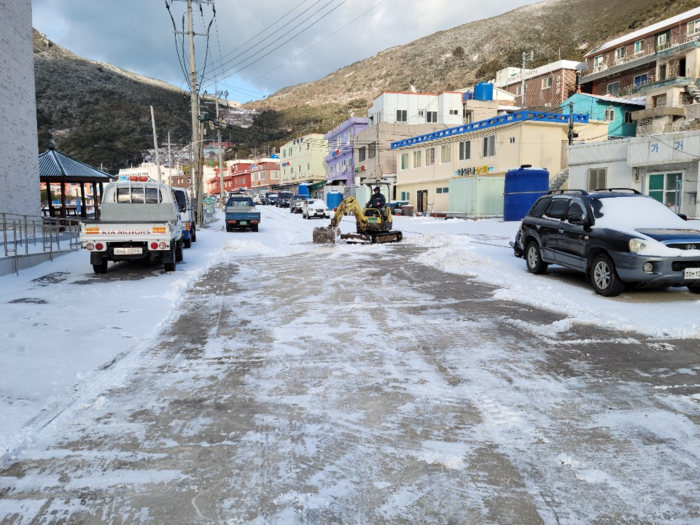 | ▲ 가거도 폭설 제설작업 현장 |