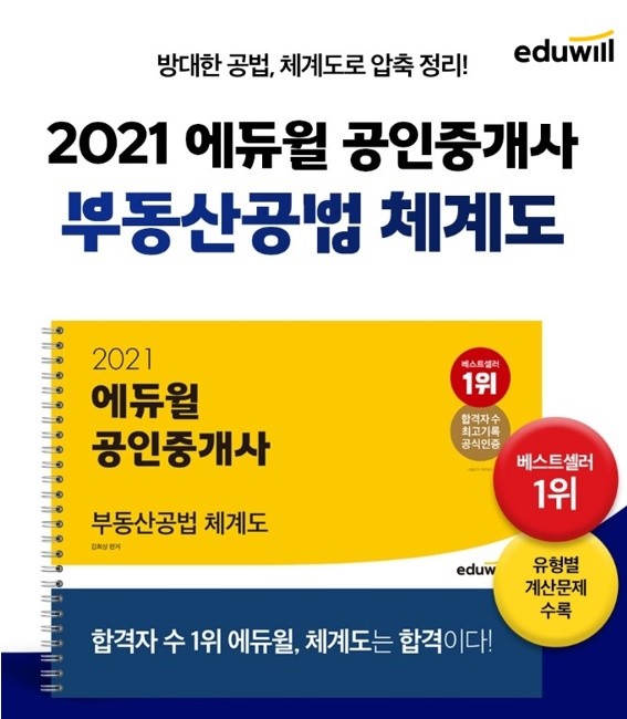 2021 에듀윌 공인중개사 부동산공법 체계도’는 에듀윌 도서몰을 비롯해 교보문고, 알라딘, 예스24, 인터파크 도서 등 각종 온오프라인 서점에서 만나볼 수 있다.