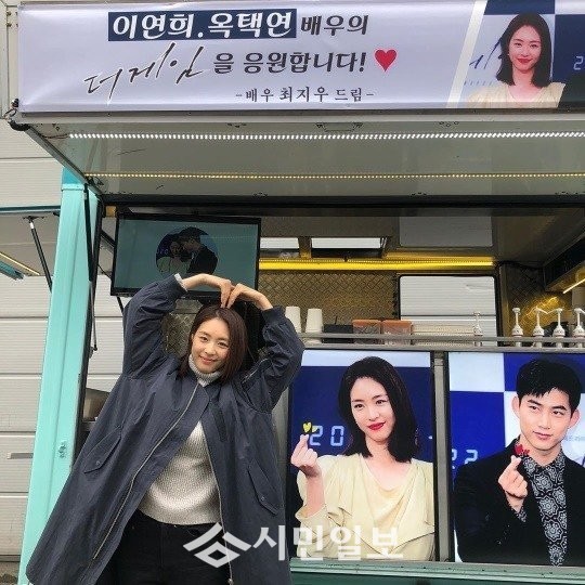 공개된 사진 속 이연희는 배우 최지우가 선물한 커피차 앞에 선 채 카메라를 향해 하트를 날리고 있는 모습으로 훈훈함을 자아냈다.
