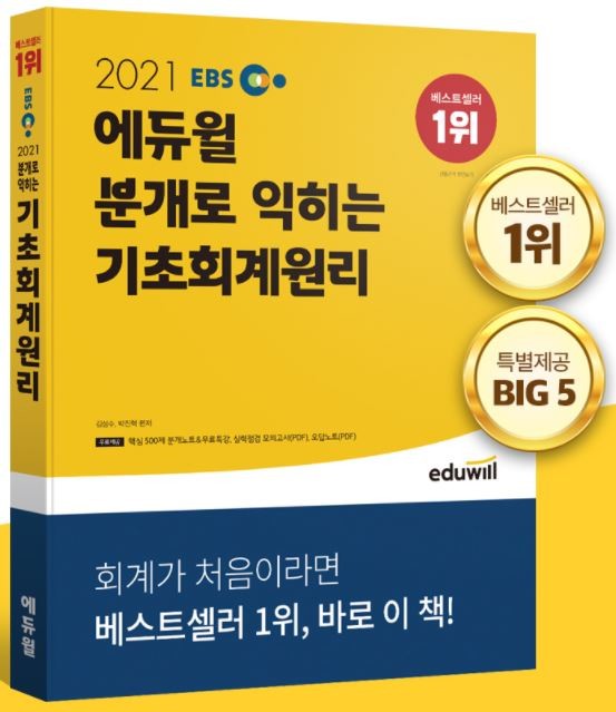 [시민일보 = 여영준 기자] 종합교육기업 에듀윌(대표 박명규)이 발간한 ‘2021 EBS 에듀윌 분개로 익히는 기초회계원리’ 교재가 온라인 서점 예스24 베스트셀러 1위를 차지했다.