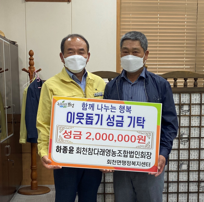 보성군 회천참다래영농조합법인 하종윤 회장은 지난 1일 회천면행정복지센터를 방문해 관내 어려운 이웃을 위해 사용해 달라며 성금 200만원을 기탁했다.