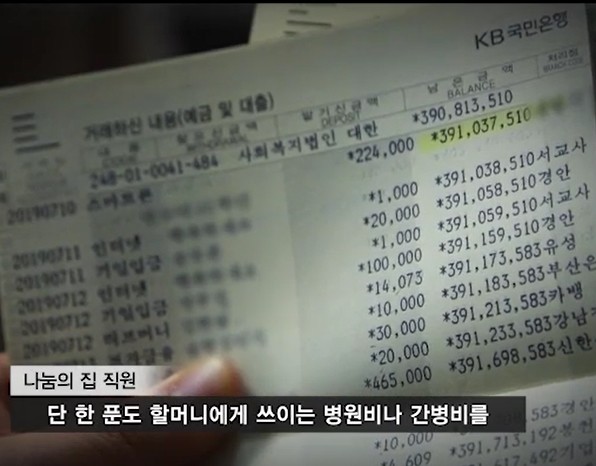 게시판 속 사진은 이날 공개된 나눔의 집 통장 이미지로 알려지며 방송에서 공개 이후 진싱 공방을 빚으며 이목을 집중시킨다.