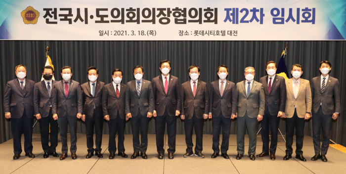 전국시도의회의장협의회(회장 김한종)는 18일 대전에 위치한 롯데시티호텔에서 ’2021년 제2차 임시회를 갖고 자치분권 확대와 지역발전을 위한 현안사항을 논의했다.