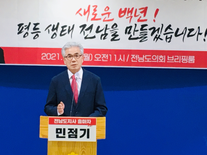 민점기 전남지사 출마자는 기자회견에서 “민주당 독점 30년 도정 30년 동안 전남 인구는 70만이 줄었고 농촌은 소멸위기에 직면했으며 노동자 농어민 중소상공인 자영업자가 곳곳에서 울부짓고 있다”며 “민주당이 망친 전남정치, 진보당이, 민점기가 바로잡겠다”고 밝혔다.