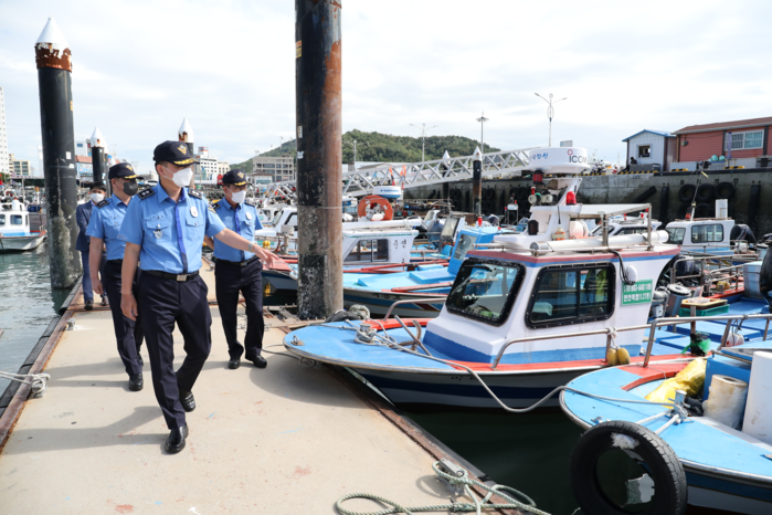 | ▲ 이명준 서해해경청장, 태풍 ‘찬투’ 북상 대비 현장점검(출처=서해지방해양경찰청) |