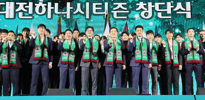 [시민일보 = 여영준 기자]하나금융그룹은 지난 4일 대전에서 시민들과 함께 새롭게 태어날 프로축구단 '대전하나시티즌'의 힘찬 도약을 알리는 창단식을 개최했다고 밝혔다.