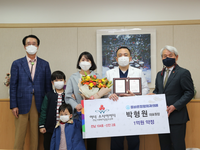 박형원 대표원장은 “저희 병원에 내원하시는 환자분들 중에 상당수가 신안군에서 오십니다. 코로나로 서로 힘든 시기에 조금이나마 도움이 됐으면 하는 마음 가장 크고, 환자분들께 항상 감사하게 생각한다”고 가입소감을 밝혔다.