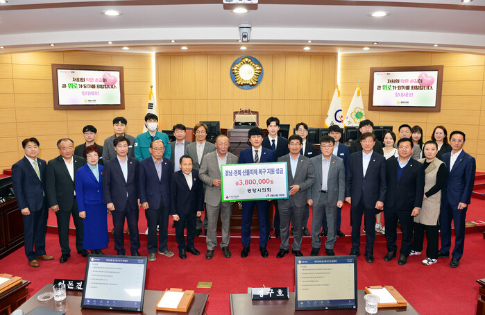최대원 의장은 “예상치 못한 산불로 삶의 터전을 잃은 이웃들의 아픔에 깊은 위로의 마음을 전한다.”라며 “광양시의회는 앞으로도 사회적 연대와 나눔 실천에도 꾸준히 앞장서며 시민 중심의 의정활동을 펼치겠다.”라고 밝혔다.