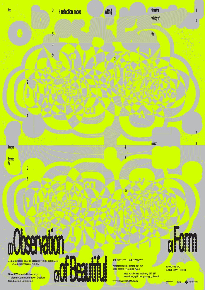 [시민일보 = 이대우 기자] 서울여자대학교 시각디자인전공이 제41회 졸업전시회 '⁽¹⁾아름다운 ⁽²⁾형태의 ⁽³⁾관찰'을 개최한다.