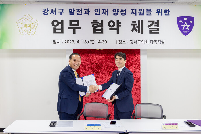 [시민일보 = 홍덕표 기자] 서울 강서구의회(의장 최동철)는 최근 구의회 1층 다목적실에서 강서대학교와 '지역사회 발전과 인재 양성 지원을 위한 업무 협약'을 체결했다.