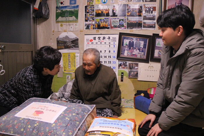 이번 위문은 6.25전쟁 당시 육군으로 참전한 이모(진도거주, 94)씨, 해병대로 입대하여 참전한 정모(영암거주, 91) 씨 등 2가구를 방문하고 , 홀로 거주하는 6.25참전유공자분들이 조금이라도 따뜻한 겨울이 되기를 바라는 마음을 담아 겨울 이불과 과일 등 위문품을 준비했다.
