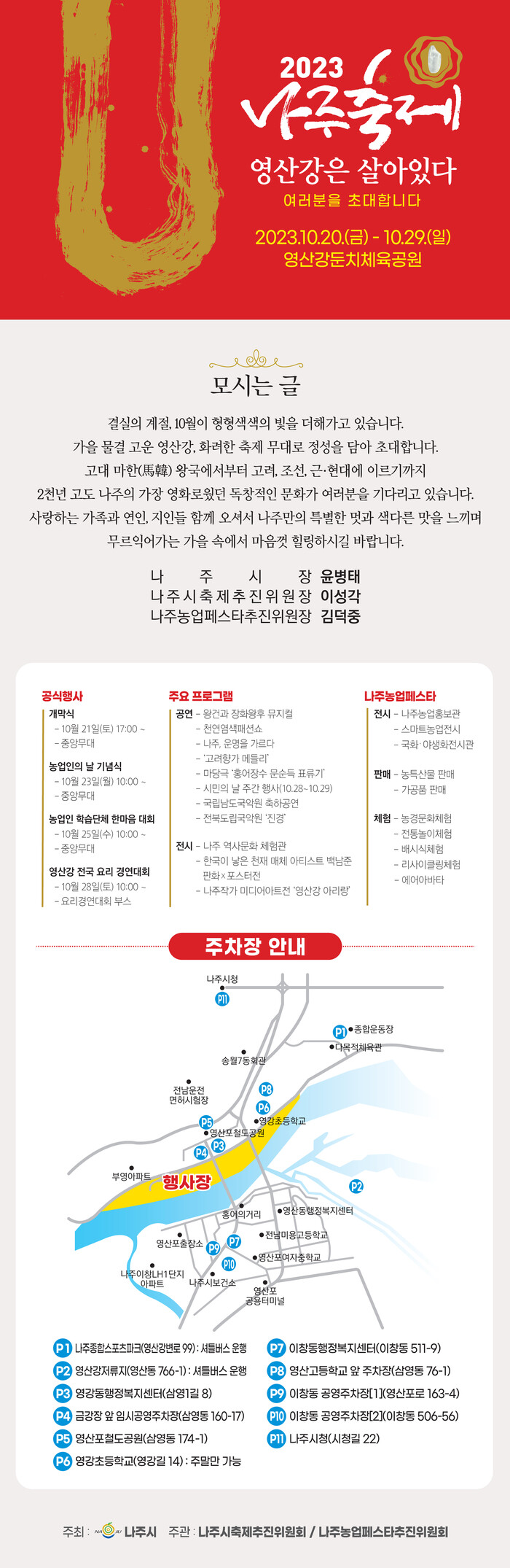 나주시가 개발한 모바일 초청장은 강렬한 색상의 포스터와 모시는 글, 축제 핵심 프로그램, 주차장 등이 한눈에 알기 쉽게 배치돼있다.