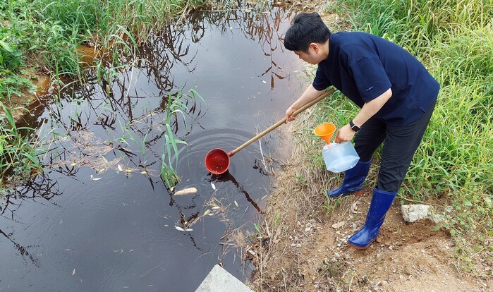 | ▲ 나주시, 가축분뇨 무단 방류 점검 현장(출처=나주시) |