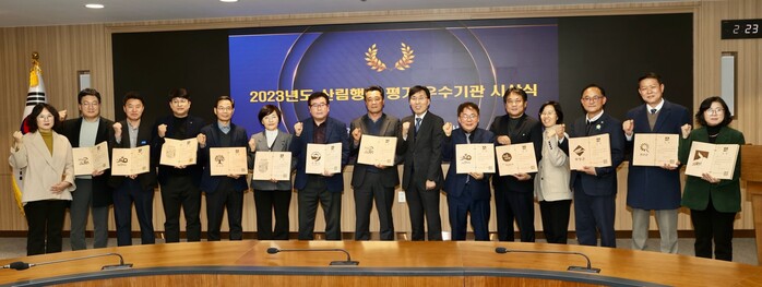 [남악=황승순 기자]전남남도는 21일 동부청사 나철실에서 2023년 산림행정평가에서 올해 영예의 대상에 순천시를 선정해 시상했다. 이날 시상식에서는 산불예방 대응평가 시상식도 함께 이뤄졌다.