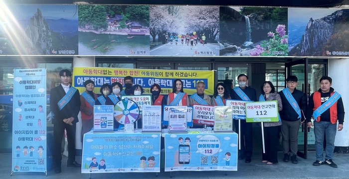 이날 개최된 캠페인은 군민들에게 아동학대 예방하고 피해 아동의 조기 발견, 신속한 개입을 위해 실시했으며, 아동학대 정의 및 신고요령을 안내하고 아이지킴콜 112 앱 설치를 통해 아동학대가 의심이 될 때 적극적으로 신고할 수 있도록 홍보했다.
