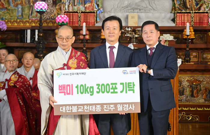 대한불교천태종 진주 월경사(조진덕 주지스님)는 지난 22일 창립 50주년을 기념해 지역의 어려운 이웃을 돕고자 진주시복지재단(이사장 이성갑)에 백미 10kg 300포(환가액 990만 원 상당)을 기탁했다.