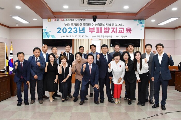 [김해=최성일 기자] 김해시의회(의장 류명열)는 26일, 의원 및 직원을 대상으로 2023년 부패방지 교육을 실시했다.