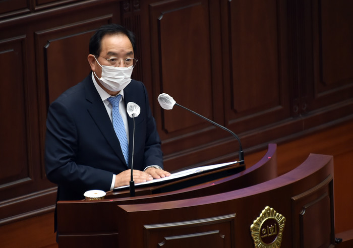 하윤수 부산광역시교육감이 5일 오후 2시 부산시의회 본회장에서 부산시의회 안성민 의장 및 박중묵·이대석 부의장, 박형준 부산시장, 시의원 등이 참여한 가운데 열린 ‘제9대 부산광역시의회 개원 기념식’에서 축사를 하고 있다.