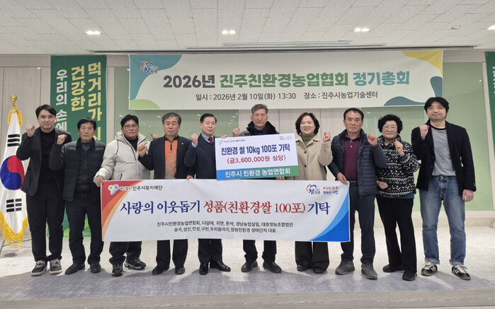 진주시 (사)친환경농업협회는 10일 진주시농업기술센터에서 기부 행사를 개최해 정기총회를 개최하면서 친환경협회 및 재배단지대표, 대호영농법인에서 마련한 친환경쌀 100포대를 진주복지재단에 기탁해 훈훈함을 더했다.