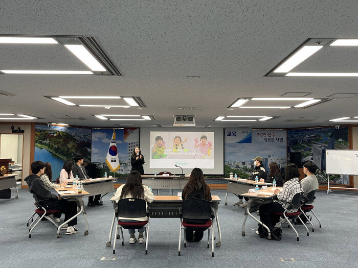 진주시는 29일 시청 3층 문화강좌실에서 2025년 아동참여단 ‘대학생 멘토단’을 대상으로 사전 교육을 실시했다.