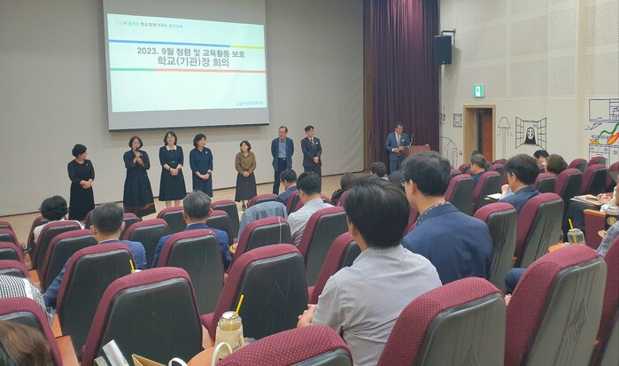 이 날 회의는 9월 1일자로 부임한 교육지원과장 포함 7명 유·초·중등 교(원)장의 축하 인사로 시작하였다. 주요내용으로는 합천문화예술나눔축제 ‘온데만데 행복이음의 날’, 빅데이터・AI플랫폼 「아이톡톡」활용 수업, 교육장기 육상대회 등 하반기 교육지원청의 다채로운 행사 및 교육활동에 대해 협의했다.
