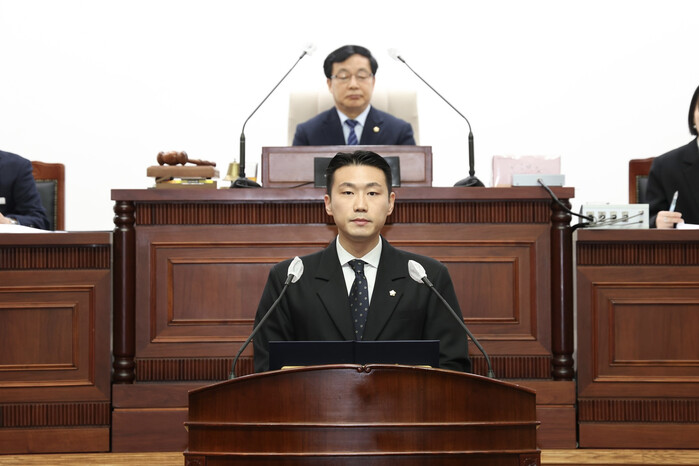 | ▲ 군포시의회 박상현 의원은 12월 1일 제285회 제2차 정례회 제1차 본회의에서 신상발언을 하고 있다 |