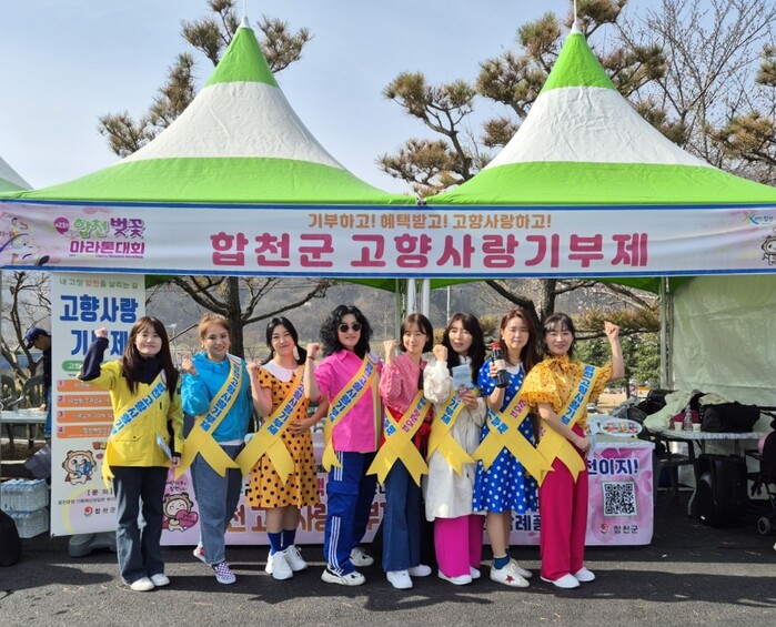 군은 제23회 합천벚꽃마라톤대회 참가 방문객을 대상으로 고향사랑기부제 홍보부스를 운영하며 제도의 취지를 설명하고 기부 혜택 및 답례품 종류를 안내하는 등 고향사랑기부제를 알리기 위한 홍보 활동을 진행했다. 홍보 동영상 상영과 답례품 전시로 이목을 집중시키고 홍보영상에 나온 민간제도홍보단(합천고향이)의 제도 댄스 공연을 펼쳐 고향사랑기부제에 대한 관심을 높였다.