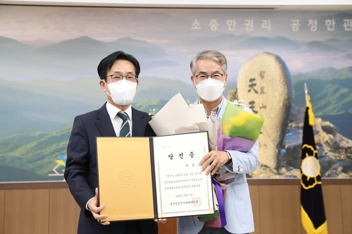 제18대 박종훈 경상남도교육감이 6월 2일 16시 경남선거관리위원회 6층 대강당에서 교육감 당선증을 교부 받고 있다