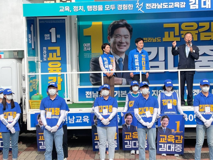 전남교육대전환실천연대 상임위원장인 김대중 전남도교육감 후보는 노무현 재단 운영위원, 목포시의회 의장, 제17대 국회의원 선거 후보, 주민 직선 1,2기 전남도교육청 비서실장 등을 역임했다.