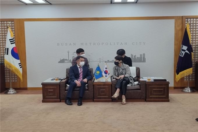 부산시(시장 박형준)는 박은하 부산시 국제관계대사가 오늘(6일) 오후 카사바예브(KASHABAEV) 주부산 카자흐스탄 총영사를 접견했다고 밝혔다