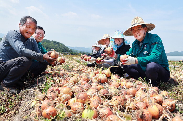 군은 이날 질병 및 상해로 농작업이 어려운 농가, 기초생활보호대상, 차상위계층, 장애인 농가, 70세 이상 고령농, 부녀자, 독거농가 등 소외계층 농가 중 14농가를 선정해 양파 수확과 샤인머스켓 알솎기 등에 힘을 보탰다.
