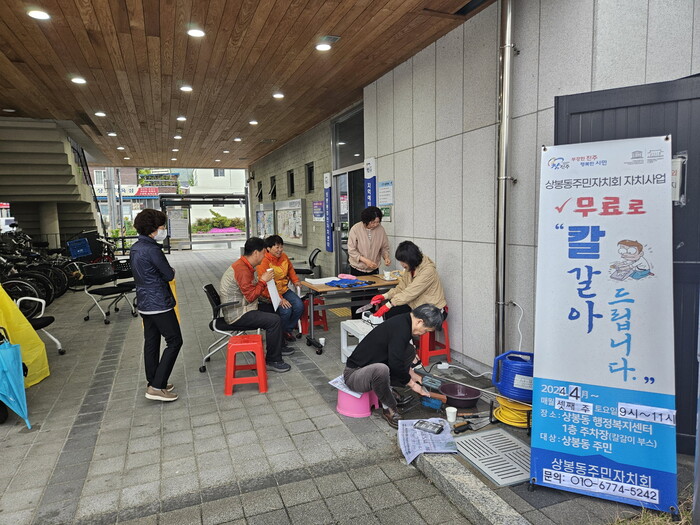 이번 칼갈이 봉사는 주민자치회 사업의 일환으로 작년 6월에 처음 실시되어 총 13회 진행되었으며, 올해는 4월을 첫 시작으로 매월 셋째 주 토요일 9시에서 11시까지 진행될 예정이다.