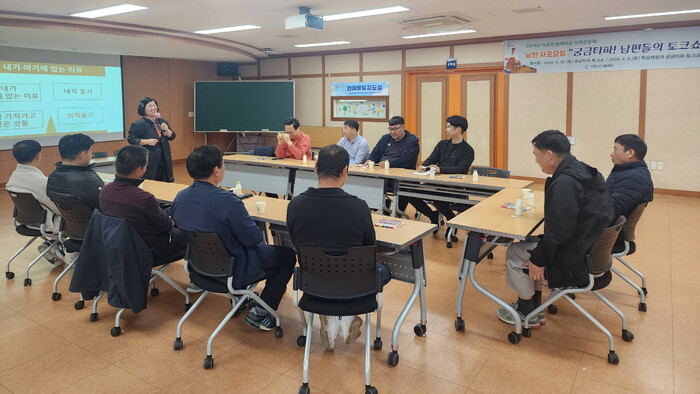 지난 30일 진주시 가족센터에서 다문화가족 남편자조 모임 회원 15명이 참여한 가운데 ‘궁금타파, 남편들의 토크쇼’를 개최했다.