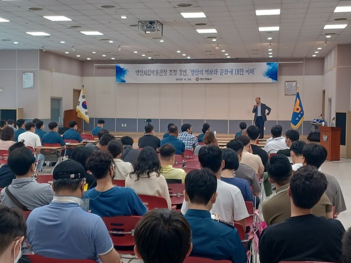 양산경찰서(서장 한상철)는 지난 28일 청사 본관 4층 대강당에서‘양산의 역사와 문화에 대한 이해’를 주제로 양산시립박물관장 특별 강연을 개최했다고 밝혔다.