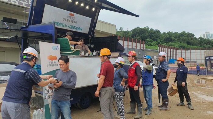 | 시흥도시공사는 공공주택 입주예정협의회와 건설현장 근로자 지원활동 실시. (사진제공=시흥도시공사) |