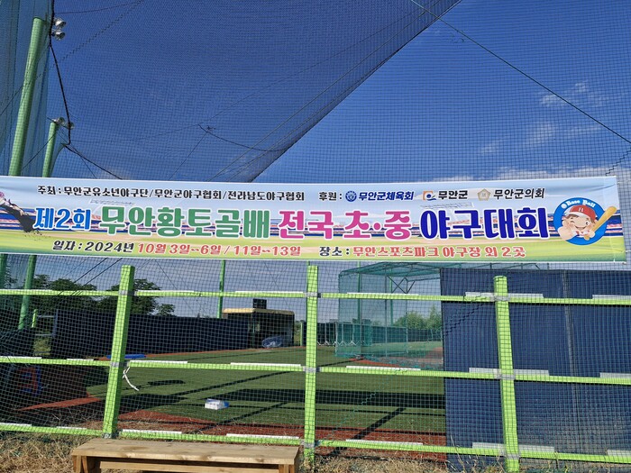 | ▲ 제2회 무안 황토골배 전국 초·중 야구대회 3일 개막을 알리는 현수막(출처=황승순 기자) |