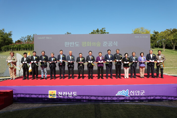 [신안=황승순 기자]故 김대중 전 대통령의 숭고한 정신과 업적을 기리는 ‘한반도 평화의 숲’이 신안군 하의도 후광리에 조성되어, 9월 23일 성대한 준공식을 개최했다.