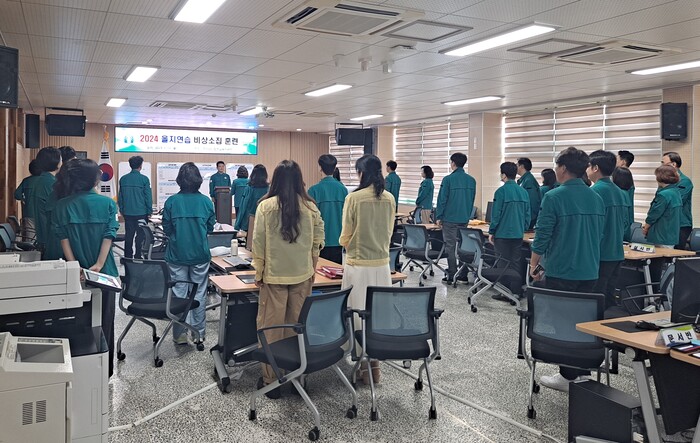 김갑진 교육장은 더운 날씨에 맡은 바 임무와 역할을 수행하는 직원들을 격려하며, 국가 평화와 안보를 위한 비상대비 훈련인 만큼 최선을 다해 연습에 임해주기를 당부하였다.