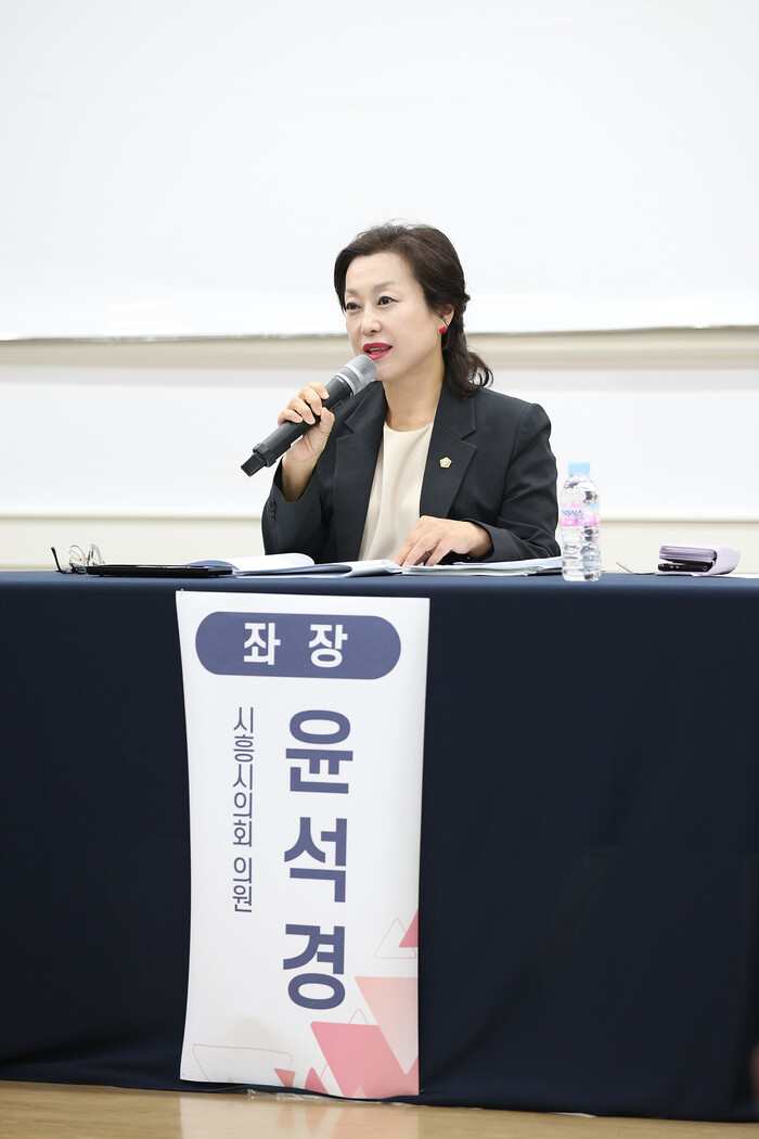 | 시흥시 거모지구 공공주택지구 소하천 활용방안 정책토론회에서 발언하고 있는 시흥시의회 윤석경 의원 모습 |