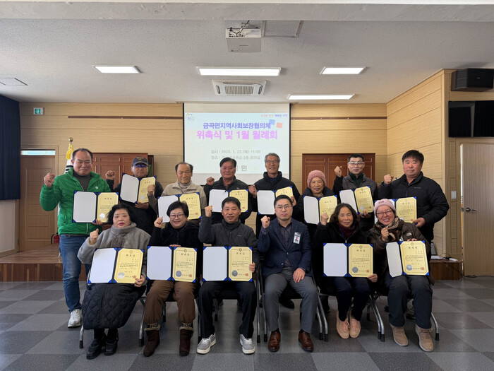 위촉식에 이어 진행된 1월 월례회의에서는 2026년도 연간 운영계획과 지역 내 위기가구 지원 방안에 대해 논의했으며, 위원들은 새해를 맞아 소외된 이웃이 없는 금곡면을 만들기 위해 더욱 촘촘한 복지 그물망을 구축할 것을 다짐했다.